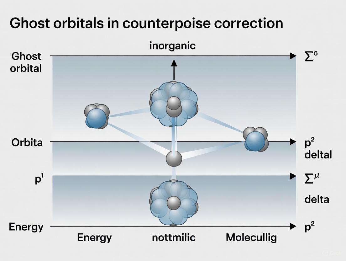 This comprehensive guide explores the critical role of ghost orbitals in counterpoise correction for accurate quantum chemical calculations of molecular interactions. Tailored for researchers and drug development professionals, we cover foundational theory, practical implementation across major computational software, troubleshooting common errors, and validation strategies. The article synthesizes current research to address Basis Set Superposition Error (BSSE) in biomolecular systems, providing methodological insights for reliable protein-ligand binding energy calculations and supramolecular interaction studies in drug discovery applications.