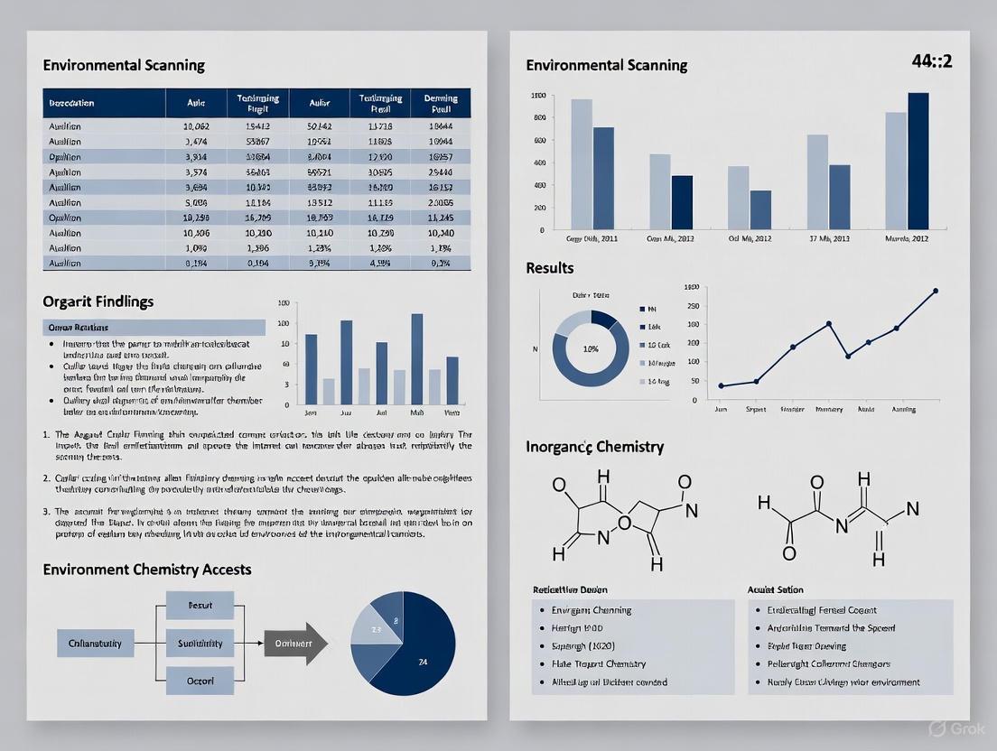 The value of environmental scanning in a biomedical context is particularly evident in its applications across diverse areas including cancer care, mental health, injury prevention, and quality improvement programs [1] [4]. More recently, environmental scanning has been applied to emerging fields such as the implementation of generative AI infrastructure for clinical and translational science, helping institutions understand the current landscape of technological adoption [5]. For drug development professionals and biomedical researchers, environmental scanning offers a structured approach to anticipate market shifts, identify research gaps, recognize collaborative opportunities, and avoid costly oversights in research and development pipelines.